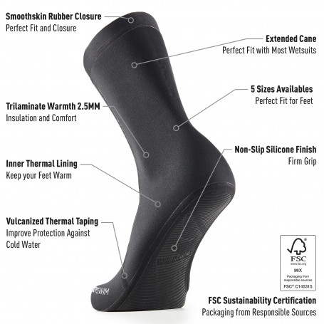 The Buddyswim neoprene swim socks are designed to keep your feet warm during open water sessions. Made with 2.5mm Trilaminate Warmth, an exclusive three-layer neoprene composition developed by Buddyswim to offer optimal protection and flexibility. The heat-sealed and vulcanized seams together with the SRC System finish provide incredible waterproofing and protection against the cold.