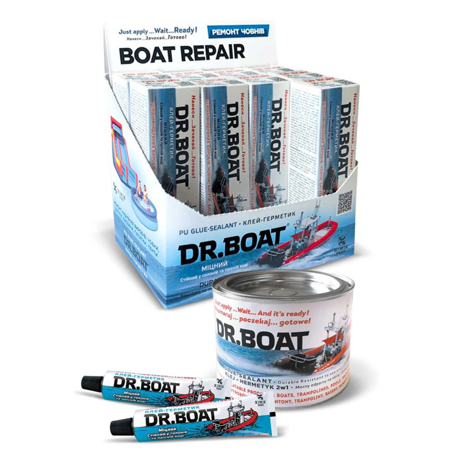 DR.Boat Adhesive-Sealant is a composition based on polyurethane for the repair and sealing of punctures or cuts in inflatable paddle boards and other products made of PVC fabric or rubberized fabric without the use of patches.