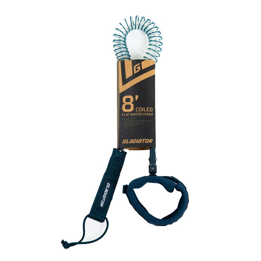 The Gladiator 8ft paddleboarding coiled leash is specifically designed for flat water paddleboarding. This SUP leash is designed with no excess drag on flat water for all paddlers from beginner to professional.