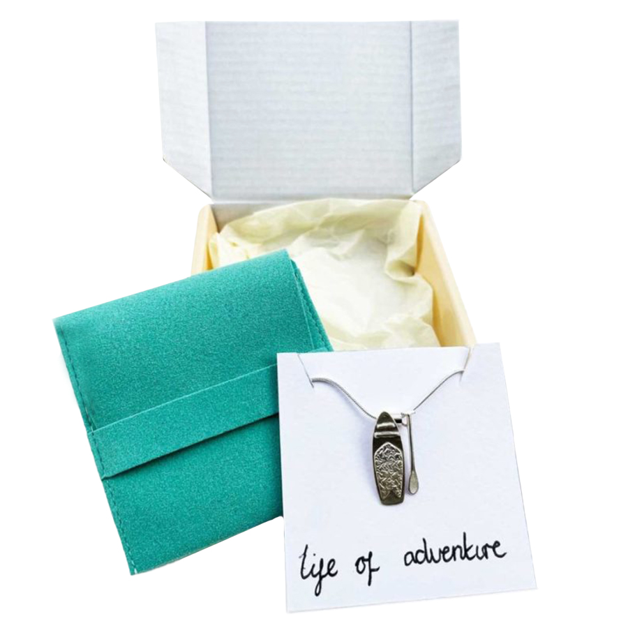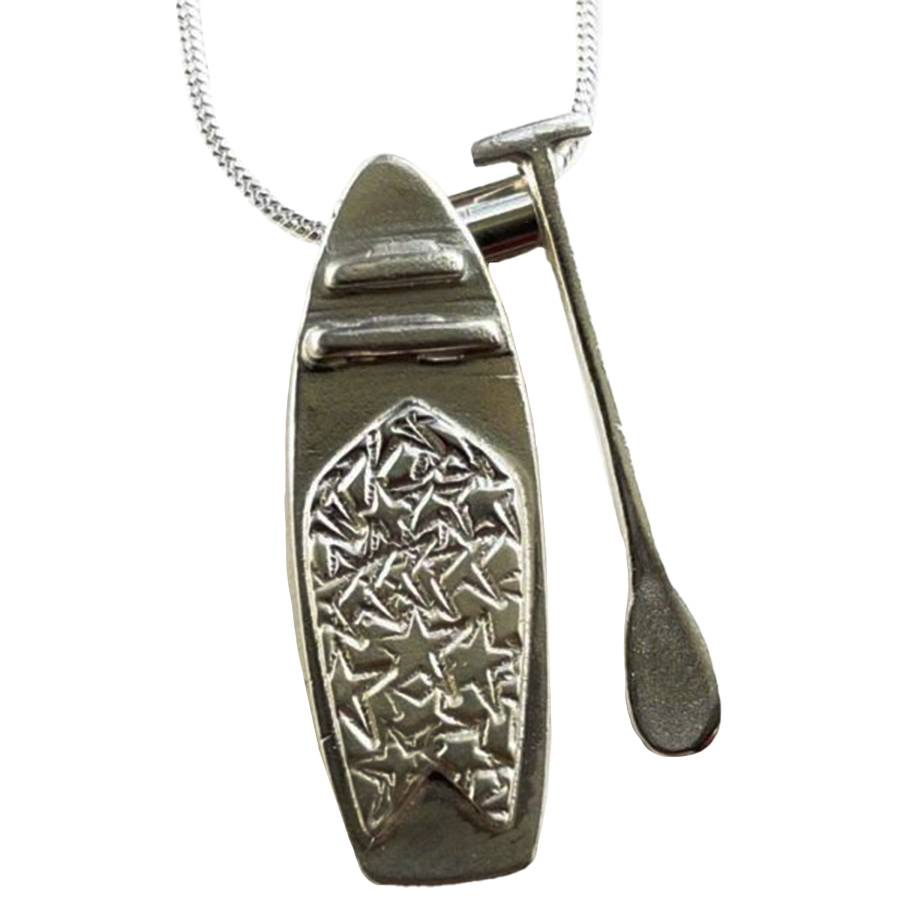 Drawing inspiration from memorable paddleboarding adventures, each piece is meticulously crafted in sterling silver by Emma in Dorset. Crafted by a passionate paddleboarder for fellow enthusiasts, this silver paddleboard necklace is perfect as a gift for that special someone in your life or as a treat for yourself!