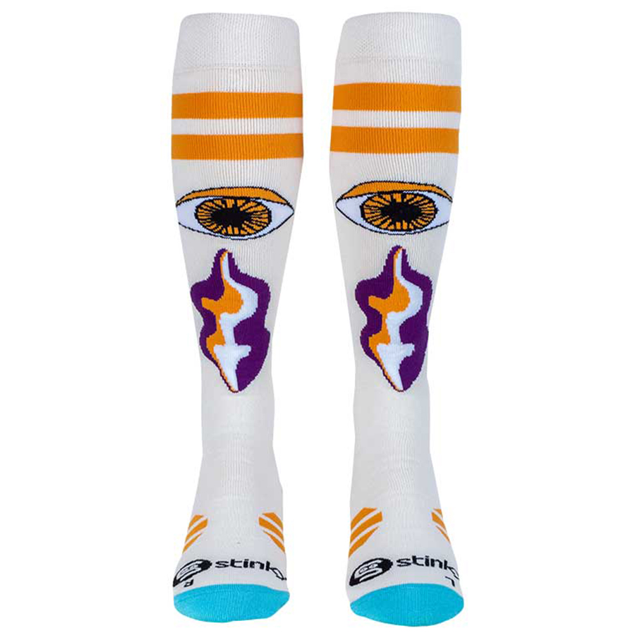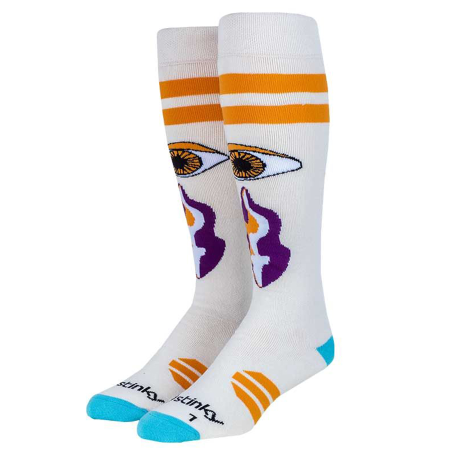 The ergonomic design offers targeted cushioning and arch support, reducing fatigue during long hours on the slopes. A seamless toe construction enhances comfort, preventing irritation inside your boots. With bold graphics and durable construction, these socks are perfect for snowboarders and skiers looking to make a statement both on and off the mountain.